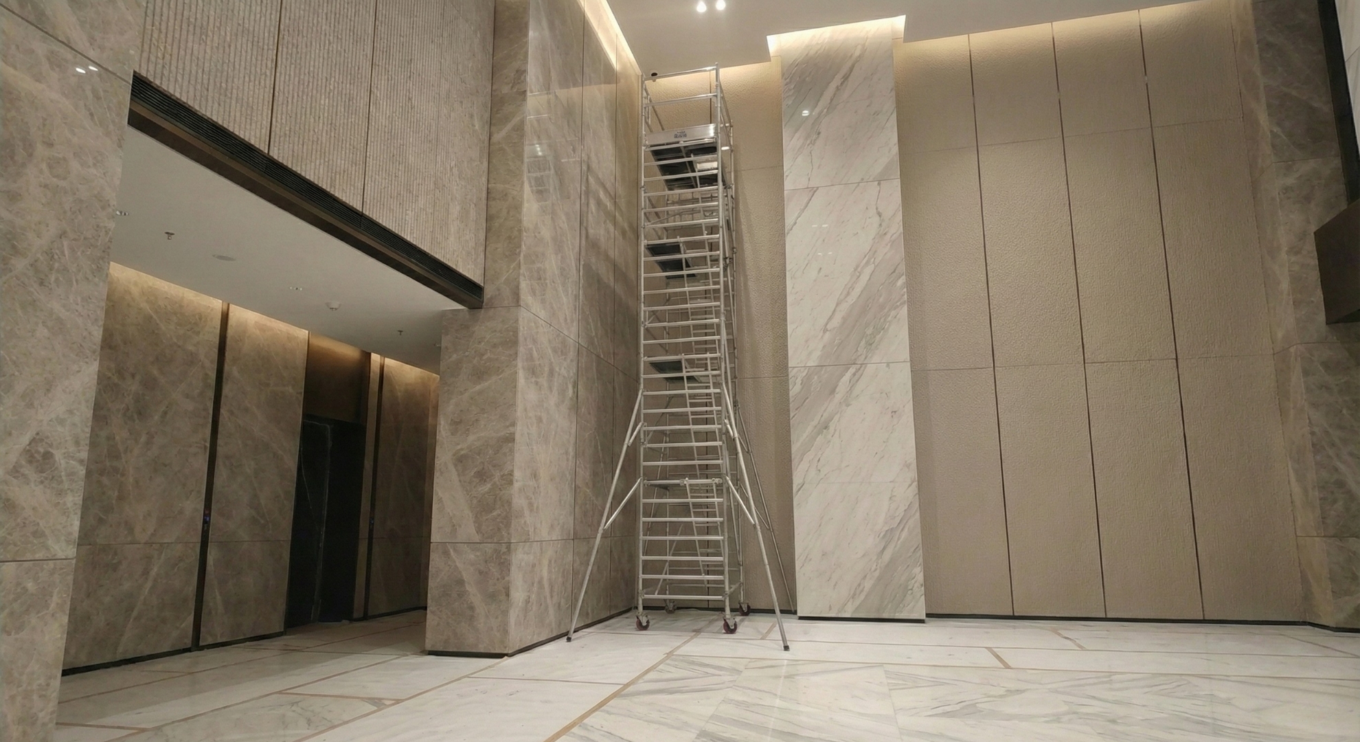 In India’s luxury residential sector, the Resident Welfare Association (RWA) is the guardian of property value. In high-end societies in Gurgaon, Noida, and Mumbai, the aesthetic appeal of the clubhouse, the grand lobby, and the common corridors directly impacts the resale and rental value of the apartments. Nothing ruins the "premium feel" of a society faster than a contractor bringing in rusted, bent, and ugly steel scaffolding to change a chandelier bulb or paint a high ceiling.